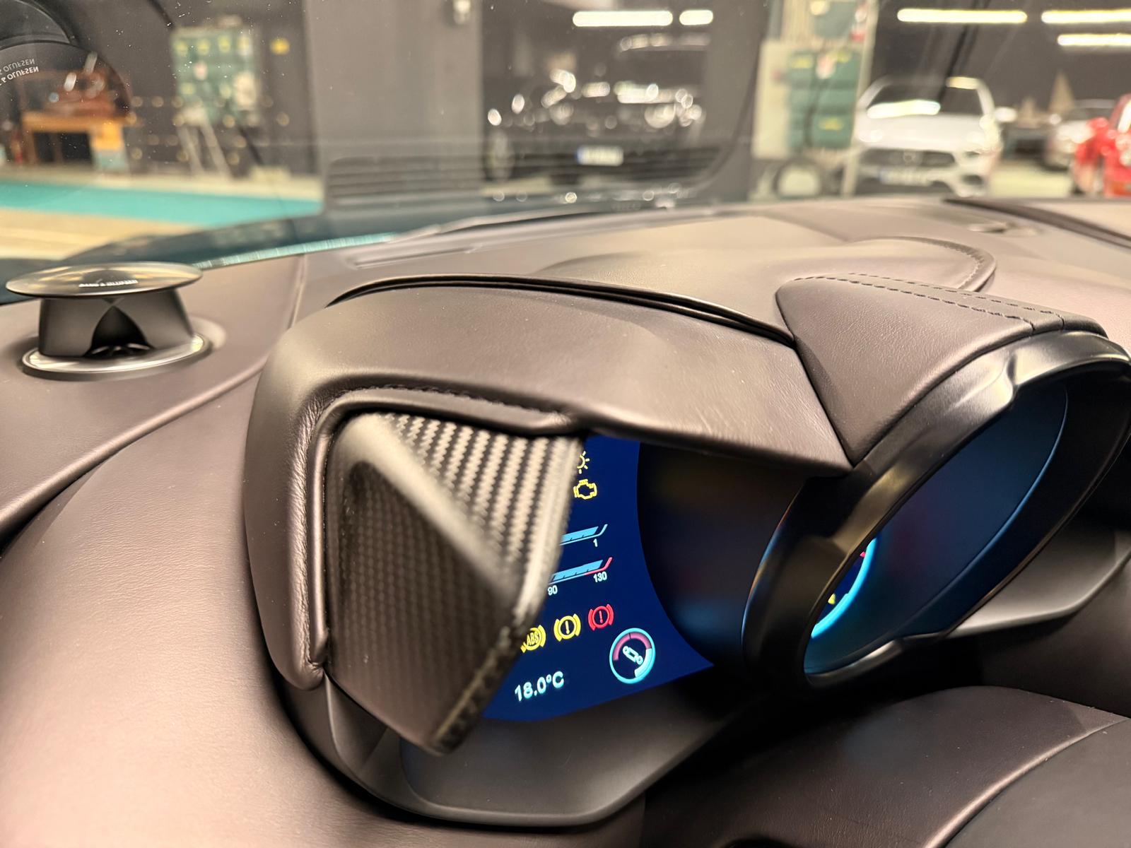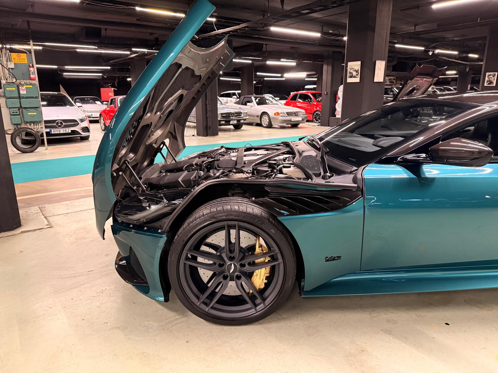 0–100 km/h på 3,2 sekunder, en topphastighet på 340 km/h – detta är prestanda konstruerad för att spännande. Kliv in och ljudet fördjupas: en Inspire Monotone Semi-Anilin-läderinredning, detaljerad med Geode Quilt-perforering, Obsidian Black-sömmar och uppslukande B&O BeoSound-ljud. Kolfiber definierar kupén – ventilationsöppningar, instrumentbräda, ryggstöd, konsol – och ratten i kolfiber Alcantara ger en motorsportkänsla till varje kontaktpunkt. Uppvärmda och kylda Sports Plus-stolar med 16-vägsjustering säkerställer att komforten aldrig viker för prestanda. Denna DBS är specialdesignad för dig som kräver det bästa: