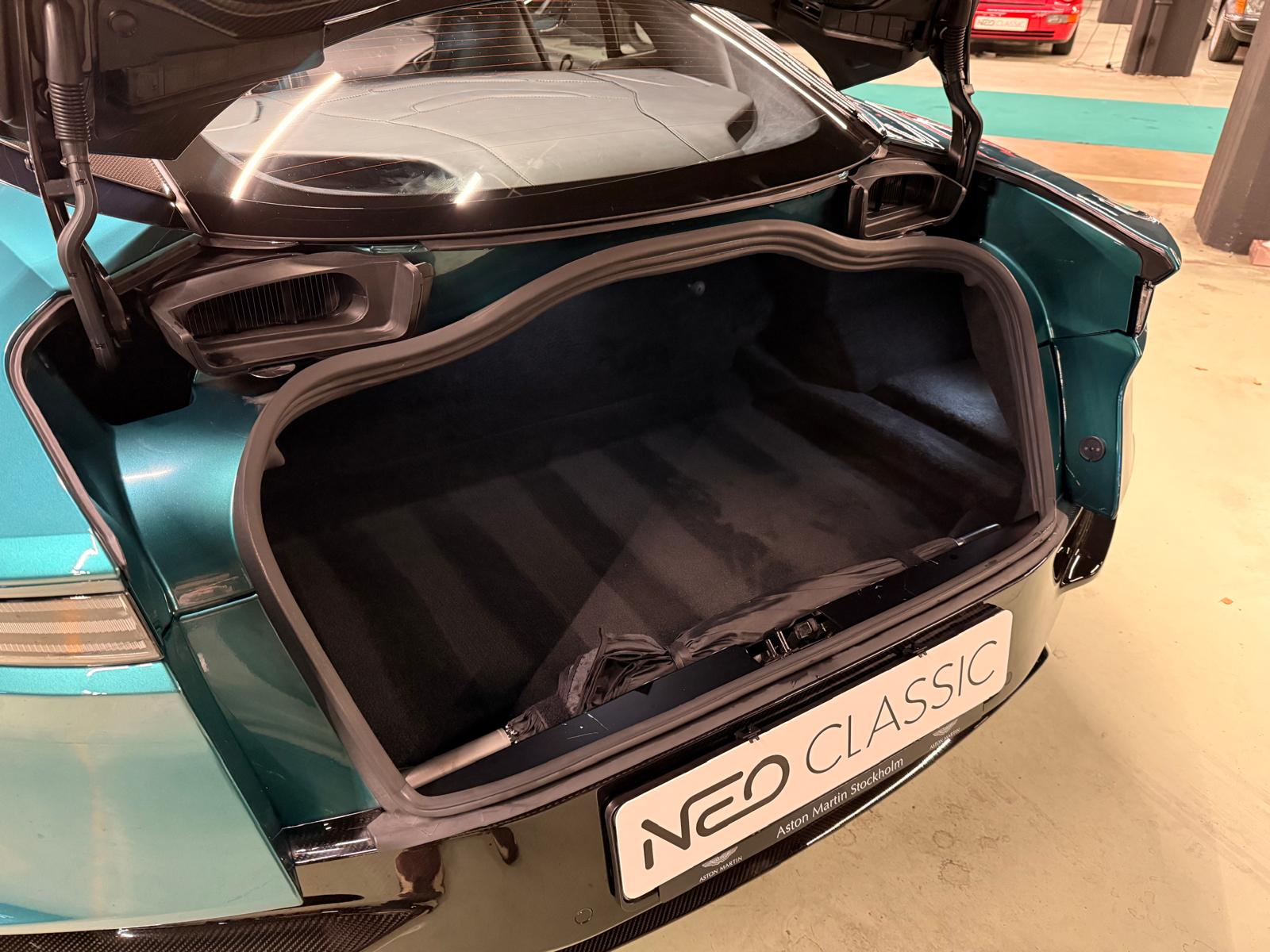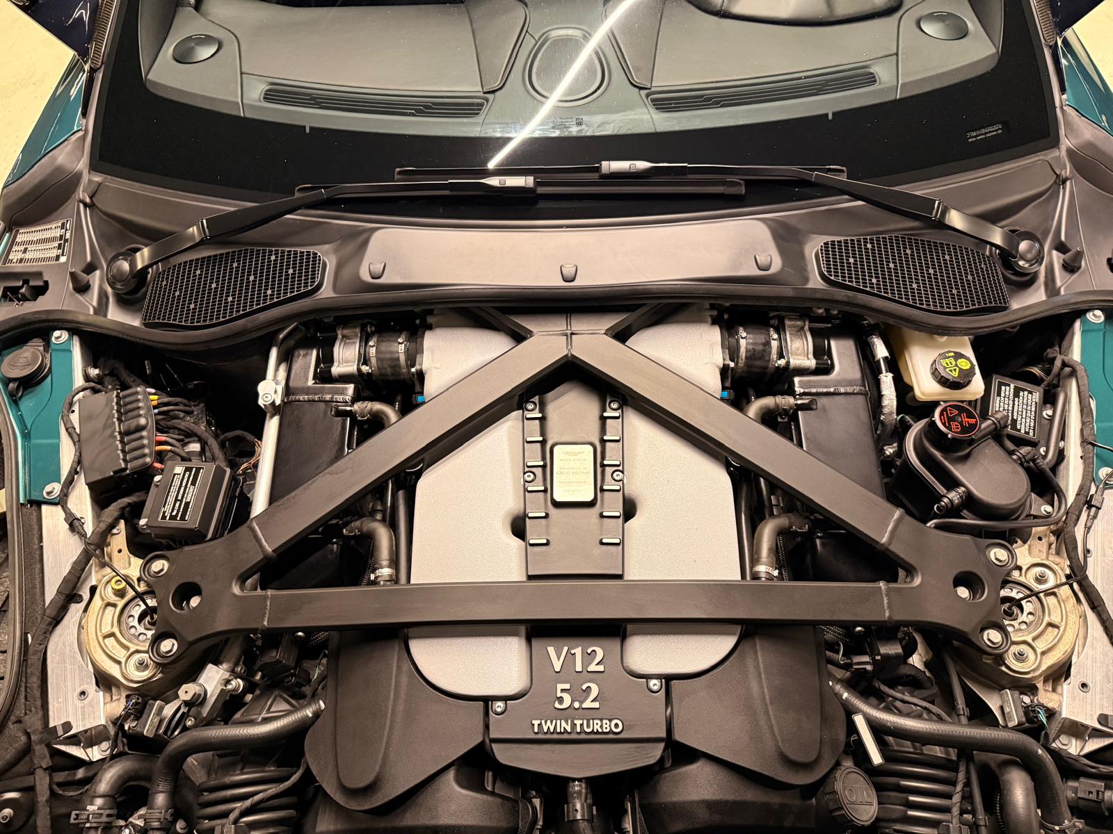 För de som vägrar nöja sig med något mindre än extraordinärt, står denna Aston Martin DBS Coupé från 2022 som det ultimata uttrycket för brittisk kraft, lyx och hantverksskicklighet. Med en finish i den ikoniska Aston Martin Racing Green, skulpterad i helt tonad, blanksvart kolfiber och i kombination med en handbyggd 5,2-liters biturbo V12 som ger 715 hk och 1000 Nm, levererar denna DBS en körupplevelse som är inget mindre än vildsint.
