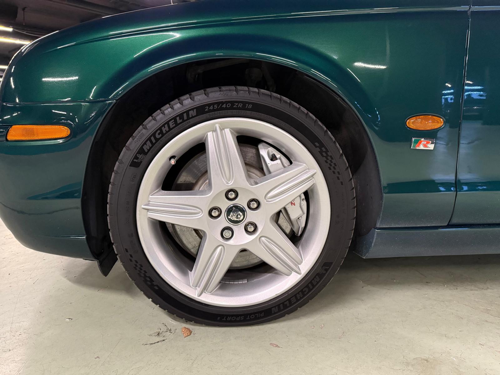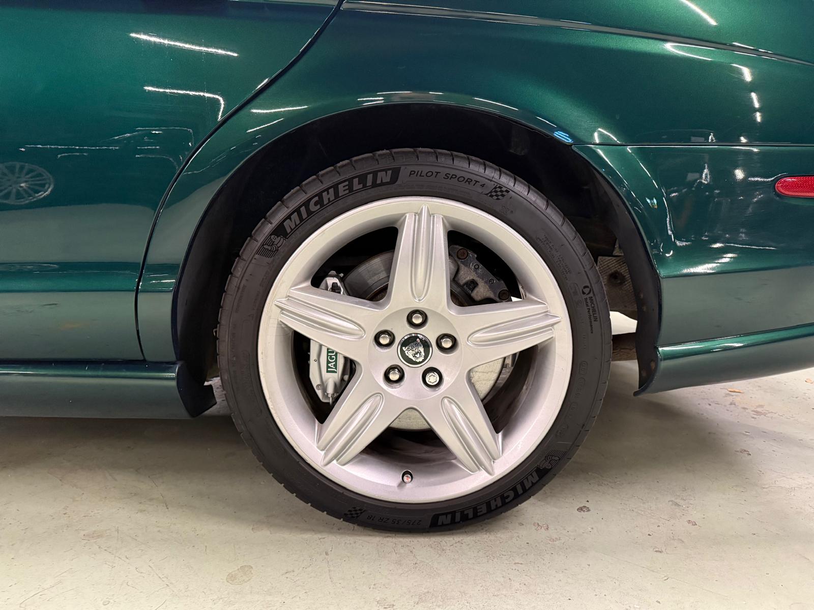 Vad som gör detta exemplar extra speciellt är dess sällsynta och stiliga färgsättning i Jaguar Racing Green – en färg som verkligen lyfter fram bilens sofistikerade linjer och sportiga karaktär. Det är en färgkombination som sällan syns på vägarna och som får huvuden att vända.